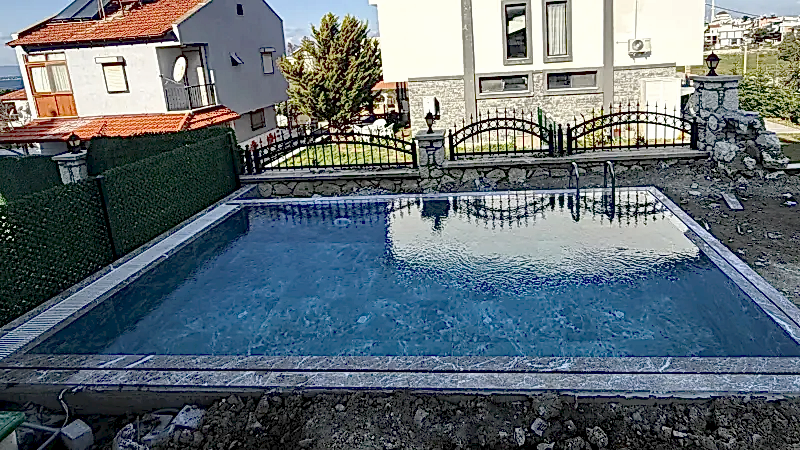 İzmir'in Seferihisar ilçesinde gerçekleştirdiğimiz 5x3 boyutlarındaki Skimmer Sistemli betonarme havuzumuz.